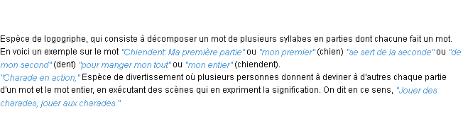 Ancienne définition « charade » du dictionnaire académique Français, parution de l’année 1835.