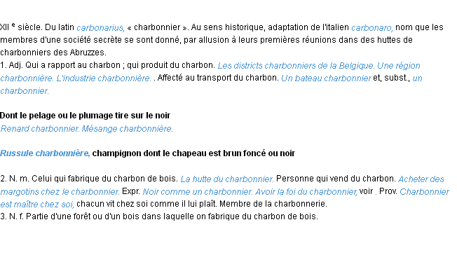 Signification éditée en 1932 pour le terme « charbonnier » par l’Académie Française.