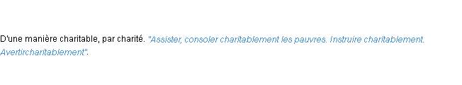 Signification du terme « charitablement », parution de 1986, dictionnaire académique Français.