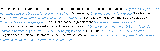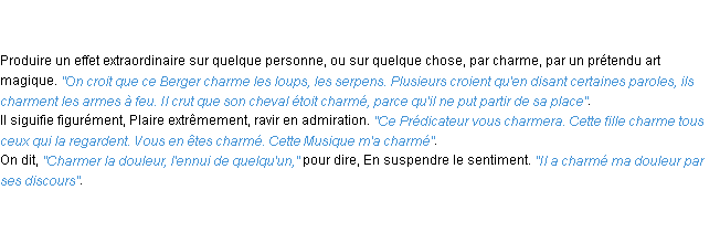 Ancienne définition de « charmer » de source académique (Académie Française, parution de 1835).