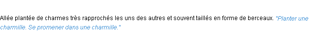 Signification éditée en 1986 pour le terme « charmille » par l’Académie Française.