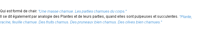 Ancienne signification du terme « charnu », parution de 1835, dictionnaire académique Français.