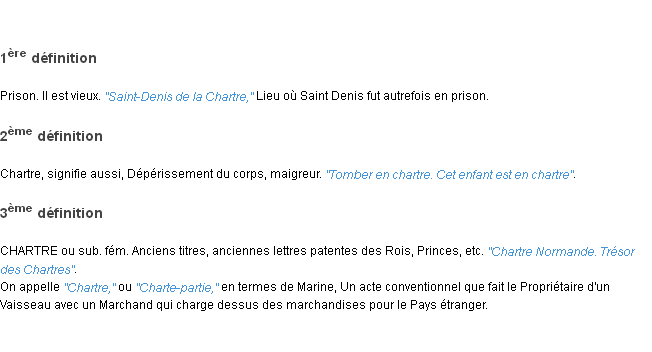 Ancienne définition académique pour le terme « chartre » (parue en 1798).