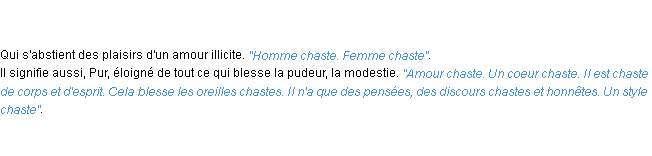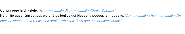 Ancienne définition de « chaste » de source académique (Académie Française, parution de 1798).Merci à Germain et Angelique pour la numérisation du mot chaste.