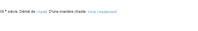 Ancienne signification éditée par l’Académie Française, année 1798.Merci à Philippe et Cécile pour la numérisation du mot chastement.