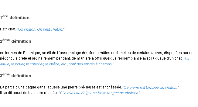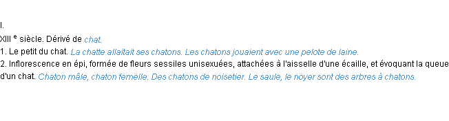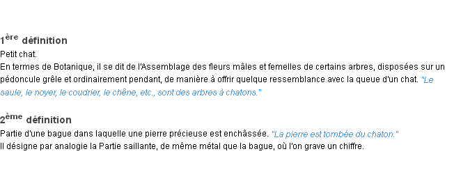 Ancienne signification du terme « chaton », parution de 1798, dictionnaire académique Français.Merci à Mireille et Adèle pour la numérisation du mot chaton.