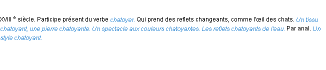 Définition du mot « chatoyant » par l’Académie Française (édition de 1932).