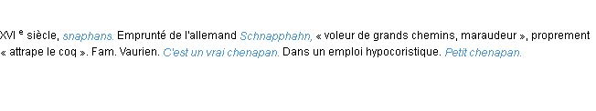 Ancienne définition de « chenapan » de source académique (Académie Française, parution de 1798).Merci à Véronique et Honorine pour la numérisation du mot chenapan.