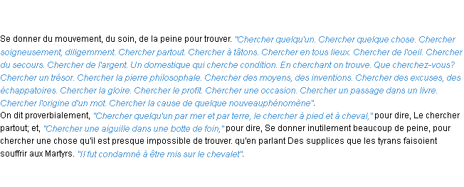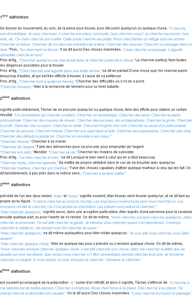 Signification éditée en 1986 pour le terme « chercher » par l’Académie Française.
