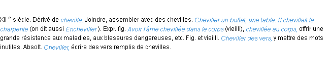 Définition du mot « cheviller » par l’Académie Française (édition de 1932).