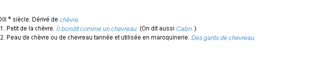Signification du terme « chevreau », parution de 1932, dictionnaire académique Français.
