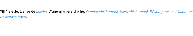 Ancienne définition développée dans dictionnaire académique, 1798.Merci à Aurèle et Philibert pour la numérisation du mot chichement.
