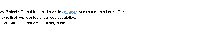 Ancienne définition académique pour le terme « chicoter » (parue en 1835).