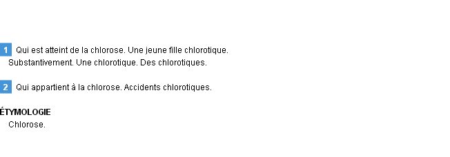 Ancienne définition de « chlorotique » de source académique (Académie Française, parution de 1835).