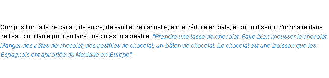 Définition de l’Académie Française (édition de 1932) pour le mot « chocolat ».