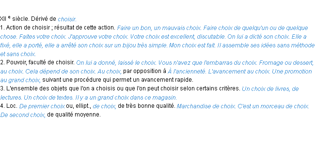 Définition de « choix » de source académique (Académie Française, parution de 1986).