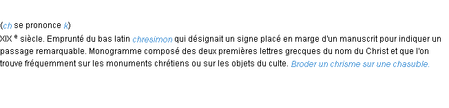 Signification parue en 1986 dans dictionnaire de l’Académie Française.Merci à Jérémie et Danièle pour la numérisation du mot chrisme.