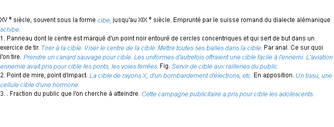 Définition de l’Académie Française (édition de 1986) pour le mot « cible ».