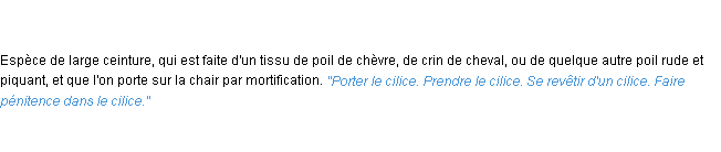 Ancienne signification du terme « cilice », parution de 1835, dictionnaire académique Français.