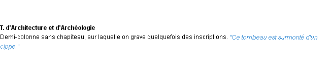 Signification éditée en 1932 pour le terme « cippe » par l’Académie Française.