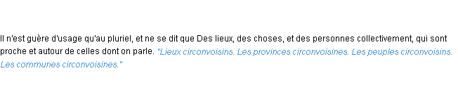 Ancienne signification parue en 1798 dans dictionnaire de l’Académie Française.Merci à Camille et Ambre pour la numérisation du mot circonvoisin.