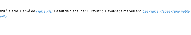 Ancienne signification éditée par l’Académie Française, année 1798.Merci à Véronique et Edmond pour la numérisation du mot clabaudage.
