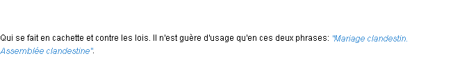 Ancienne signification éditée en 1835 pour le terme « clandestin » par l’Académie Française.