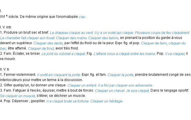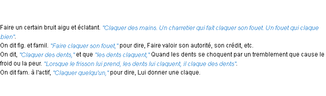Définition académique pour le terme « claquer » (parue en 1932).