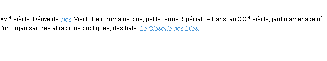 Signification du terme « closerie », parution de 1876 (dictionnaire le Littré).Merci à Corin et Hilaire pour la numérisation du mot closerie.