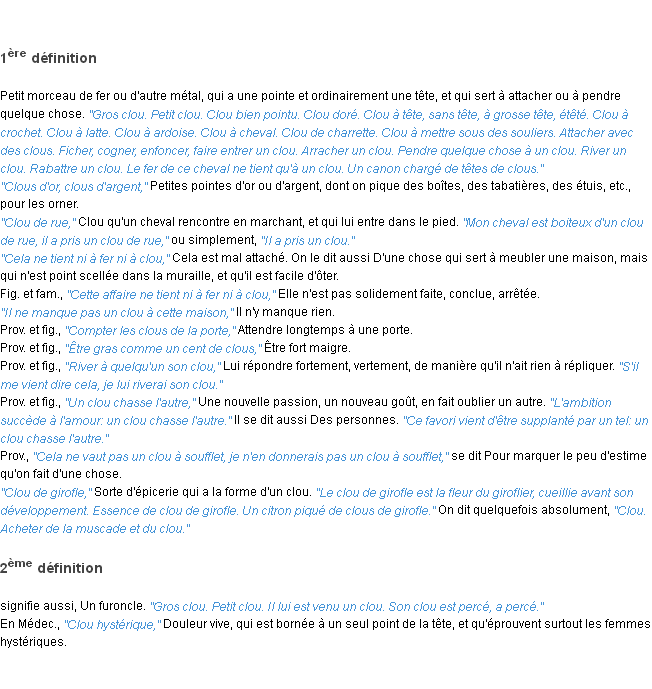 Définition du mot « clou » par l’Académie Française (édition de 1932).