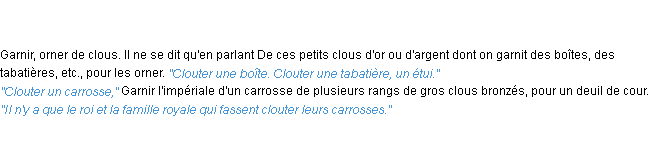 Ancienne définition académique pour le terme « clouter » (parue en 1835).