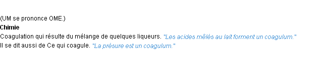 Définition académique pour le terme « coagulum » (parue en 1932).