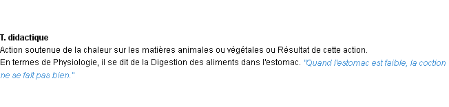 Ancienne signification éditée en 1835 pour le terme « coction » par l’Académie Française.