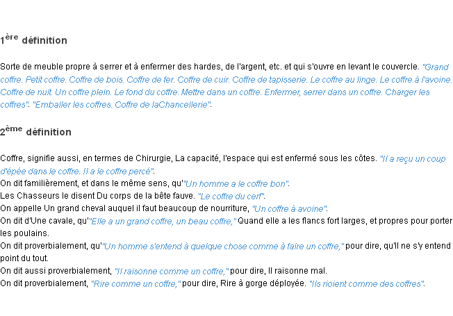 Signification du terme « coffre », parution de 1932, dictionnaire académique Français.