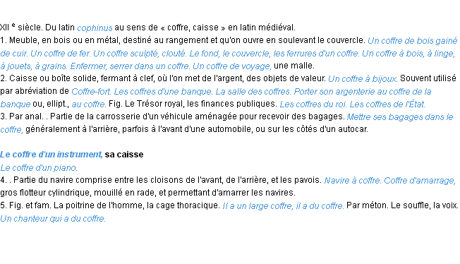 Définition académique pour le terme « coffre » (parue en 1986).