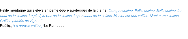 Définition de « colline » de source académique (Académie Française, parution de 1932).