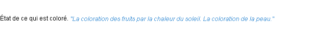 Définition de l’Académie Française (édition de 1986) pour le mot « coloration ».