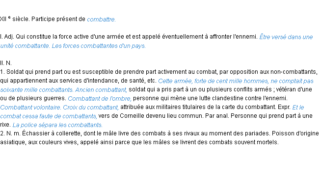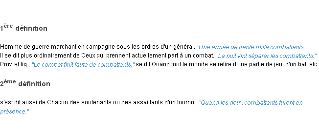 Définition du mot « combattant » par l’Académie Française (édition de 1986).