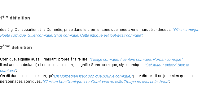 Définition « comique » du dictionnaire académique Français, parution de l’année 1986.