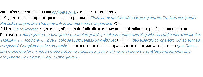 Définition de l’Académie Française (édition de 1986) pour le mot « comparatif ».