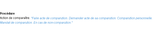 Ancienne définition académique pour le terme « comparution » (parue en 1835).