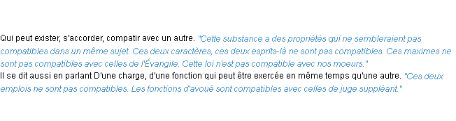 Ancienne définition de l’Académie Française (édition de 1835) pour le mot « compatible ».
