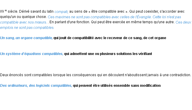 Ancienne définition du mot « compatible » par l’Académie Française (édition de 1798).Merci à Christophe et Hercule pour la numérisation du mot compatible.