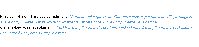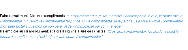 Signification du terme « complimenter », parution de 1932, dictionnaire académique Français.