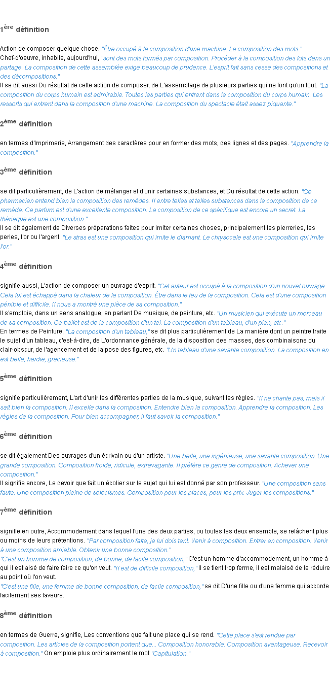 Définition « composition » du dictionnaire académique Français, parution de l’année 1932.
