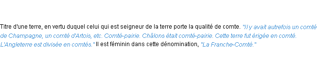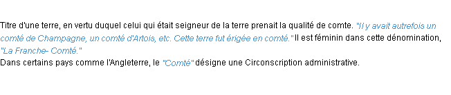 Définition « comte » du dictionnaire académique Français, parution de l’année 1986.