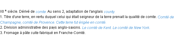 Ancienne signification issue du dico de l’Académie Française, parue en 1798.Merci à Luc et Barthélémy pour la numérisation du mot comte.