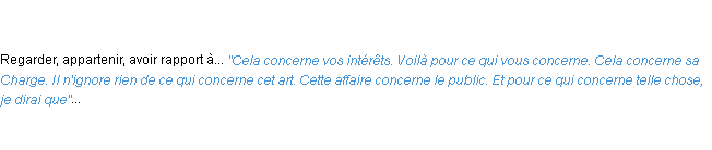Ancienne signification développée en 1798 par l’académie Française (ACAD - 1798).Merci à Hercule et Jérémie pour la numérisation du mot concerner.