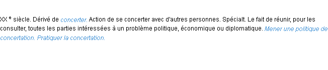 Définition du mot « concertation » par l’équipe de la-definition.fr (édition de 2011).