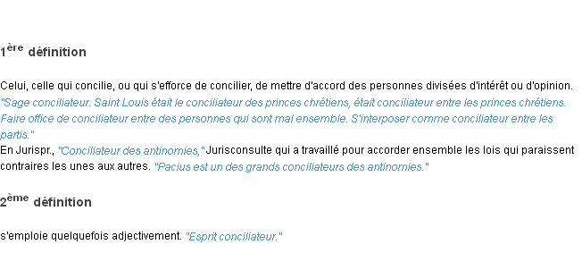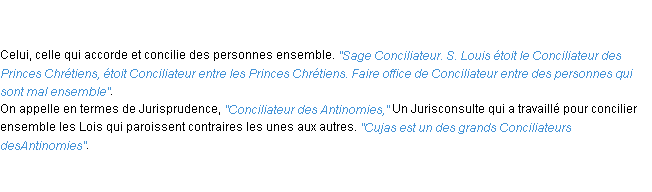 Ancienne définition académique pour le terme « conciliateur » (parue en 1835).